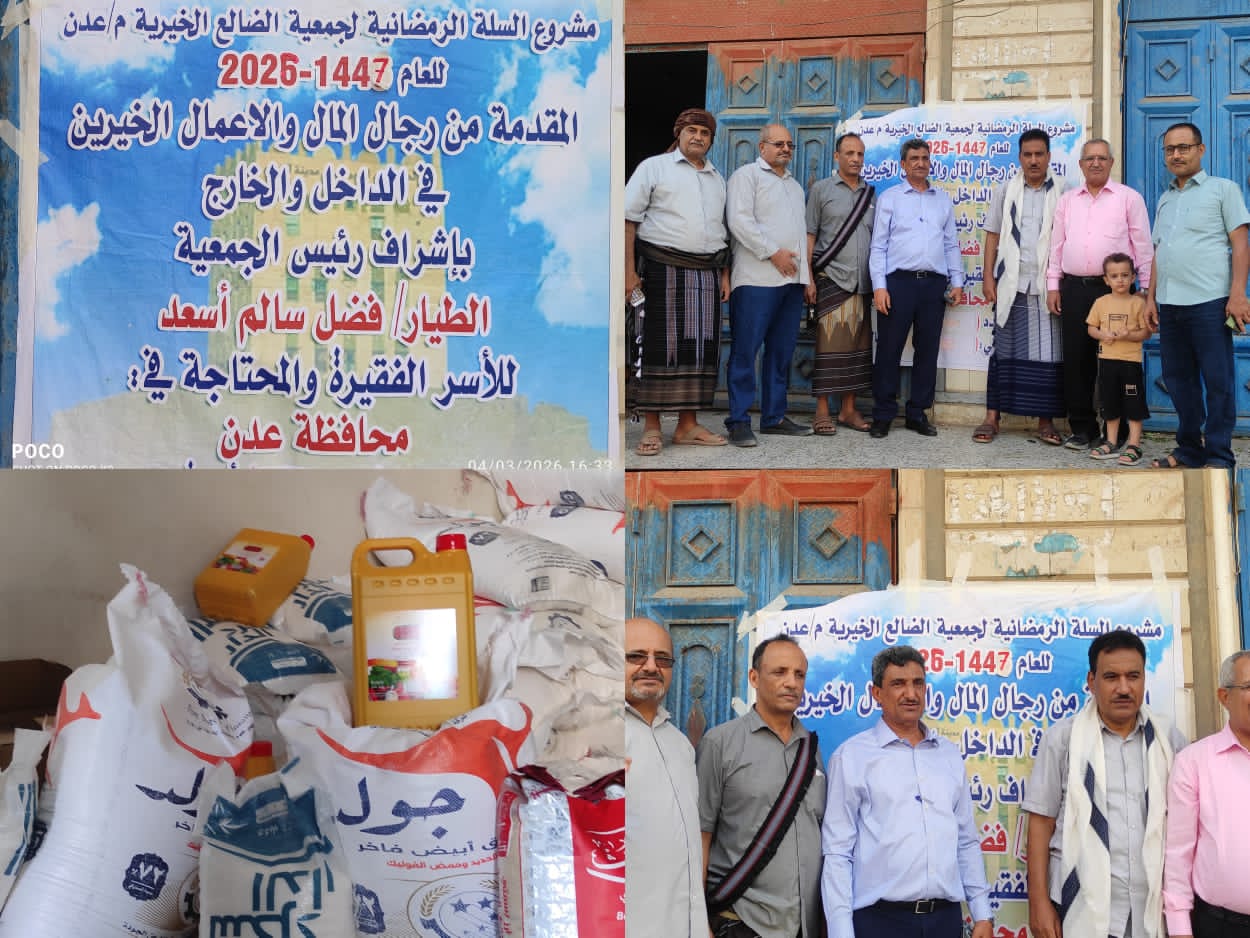 جمعية الضالع الخيرية تدشّن توزيع السلة الرمضانية في عدن ولحجعدن / خاص دشّنت جمعية الضالع الاجتماعية الخيرية، عصر اليوم في العاصمة عدن، مشروع توزيع السلة الرمضانية، مستهدفة 1100 أسرة من الأسر الأشد احتياجًا في محافظتي عدن ولحج، وذلك ضمن برامجها الرمضانية للعام 1447هـ، في إطار جهودها الرامية إلى تعزيز التكافل الاجتماعي والتخفيف من الأعباء المعيشية …