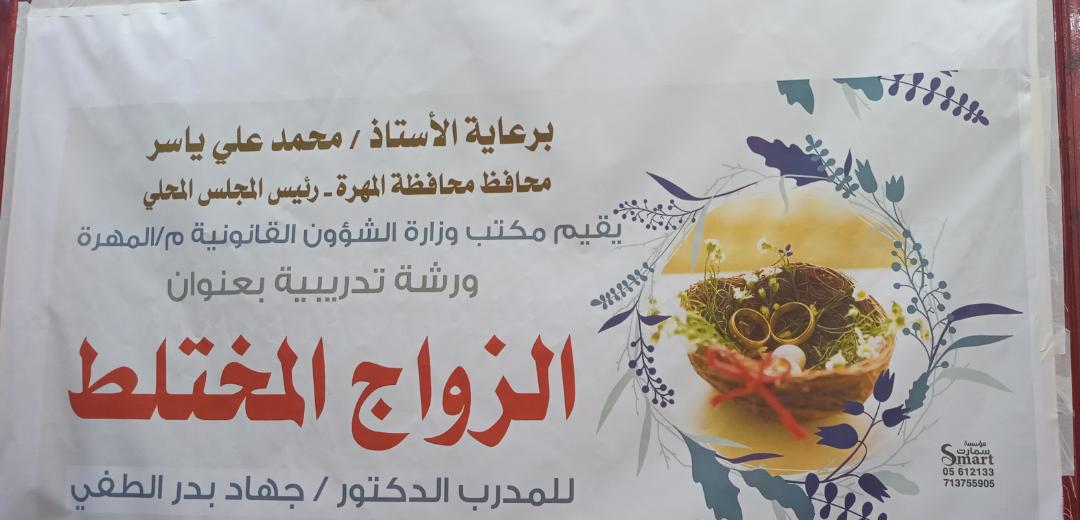 مكتب وزارة الشؤون القانونية بالمهرة ينظم ورشة تدرييبة حول الزواج المختلط ويخرج بعدد من التوصيات