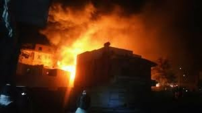 حريق سوق سوداء حوثية للمشتقات النفطية بإب