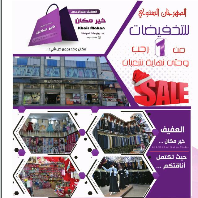 "المهرجان السنوي للتخفيضات " ..مكان واحد يجمع كل شيئ ...كل ما تحتاجه الأسرة تحت سقف واحد ...(خيرمكان) العفيف عبد الرحيم