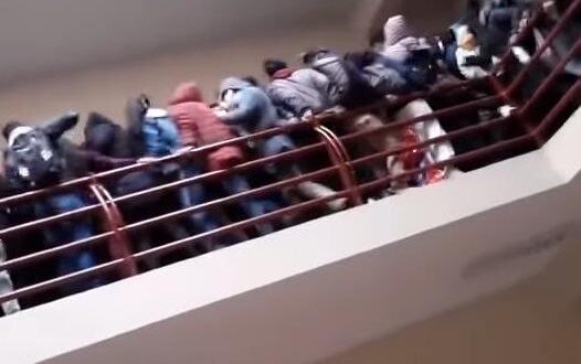 شاهد.. فيديو مروع لانهيار طابق داخل جامعة والطلاب يتساقطون موتى