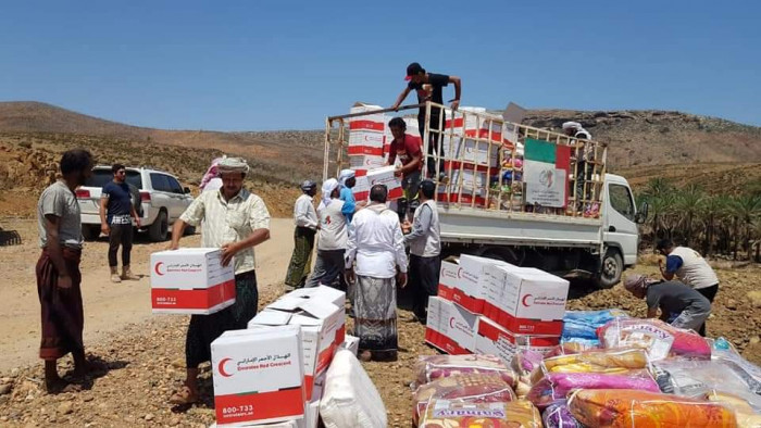 قوافل مساعدات خليفة الإنسانية تصل إلى مركز مومي بسقطرى