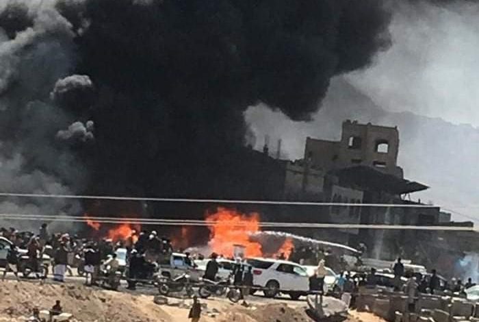 حريق هائل هو الثاني خلال أيام يلتهم احد الأسواق السوداء للمشتقات النفطية في إب