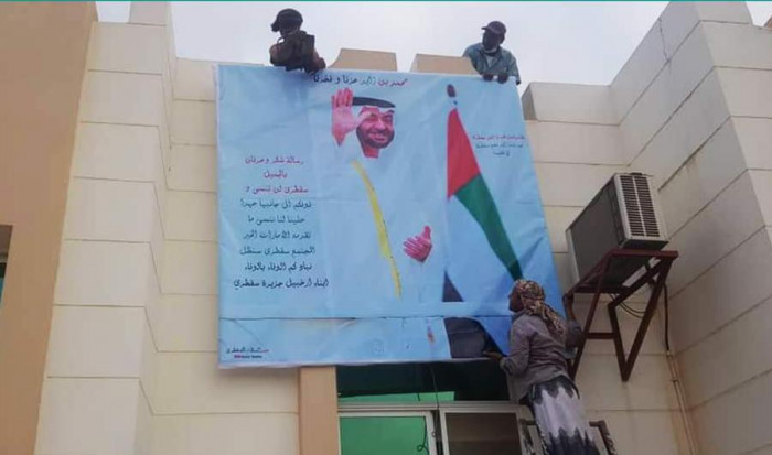 تزيين واجهة مستشفى خليفة في سقطرى بصورة بن زايد