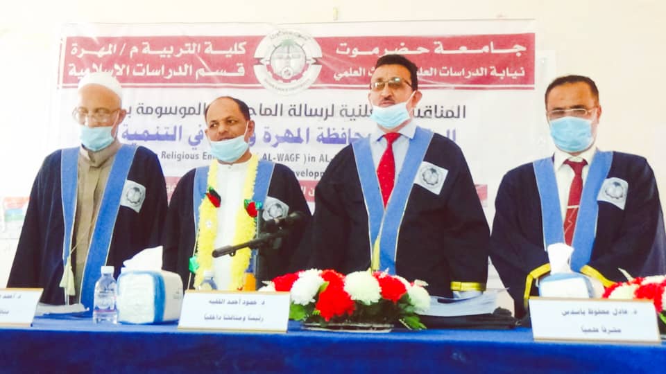 الباحث محمد أحمد حسن الشاوش ينال شهادة الماجستير بامتياز ب «الوقف في محافظة المهرة ودوره في التنمية»