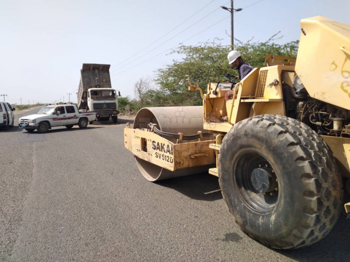 تواصل أعمال تسوية طريق جعار - زنجبار