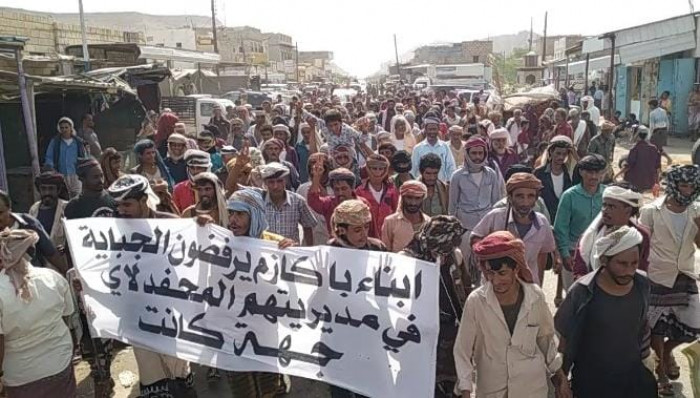 احتجاجات في المحفد على سياسة الإخوان إنهاك المواطنين بالجبايات