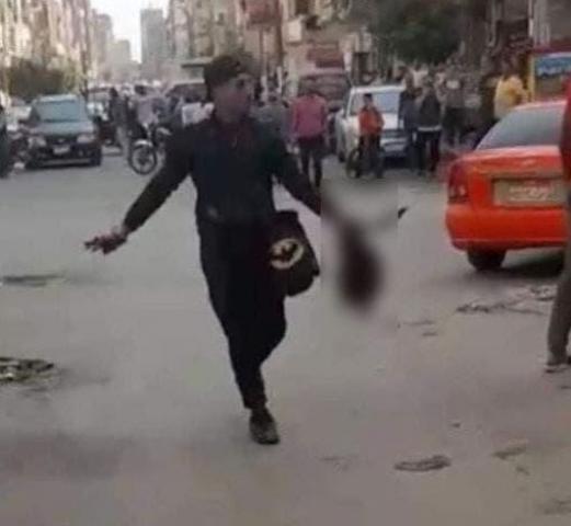 شاهد شاب يقطع رأس صديقه بـ”ساطور” ويتجول به وسط شارع عام