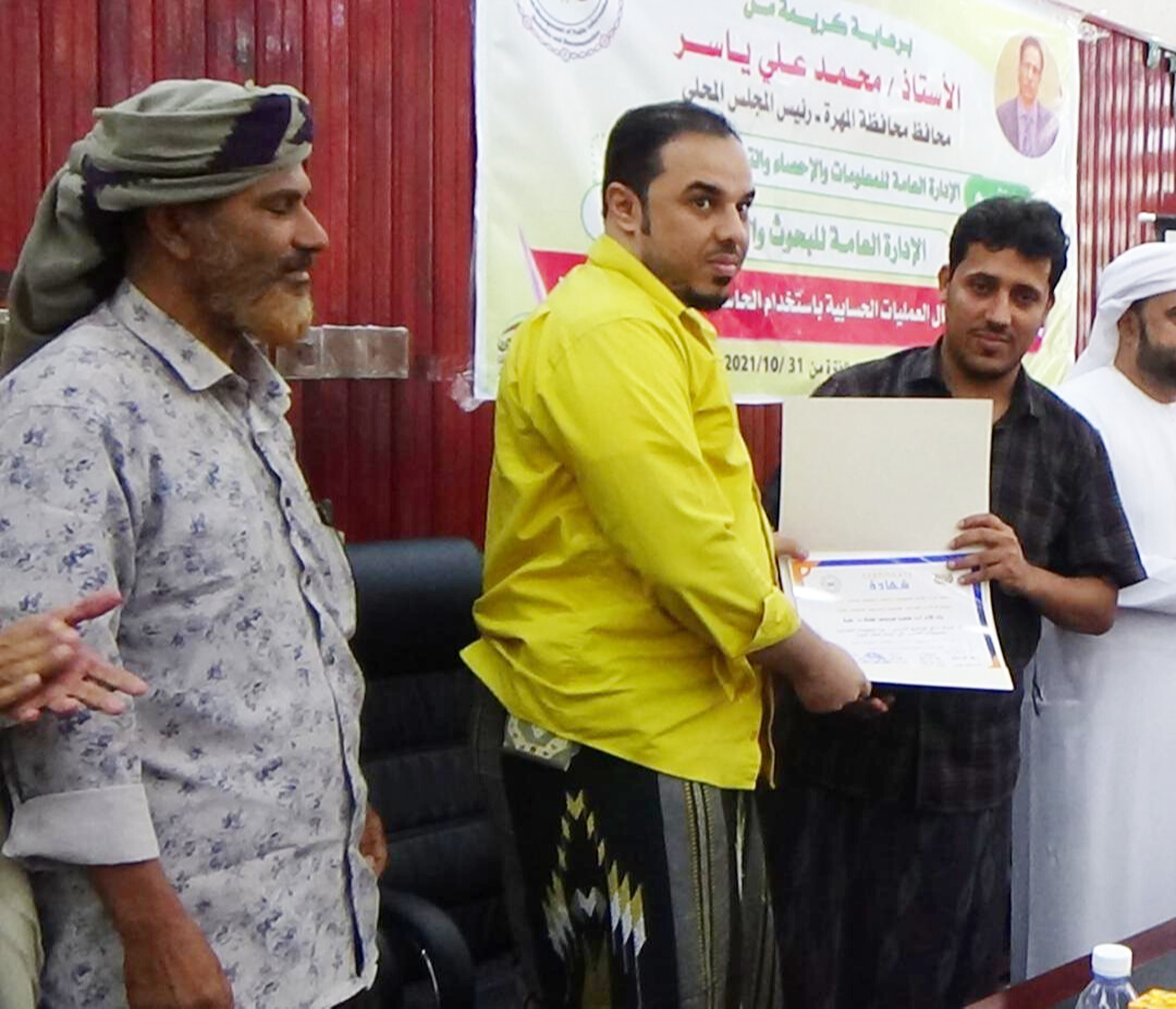 بحضور الوكيل للشؤن الفنية ..اختتام دورة العمليات الحسابية باستخدام الحاسب الالي للكادر الاداري بديوان عام محافظة المهرة