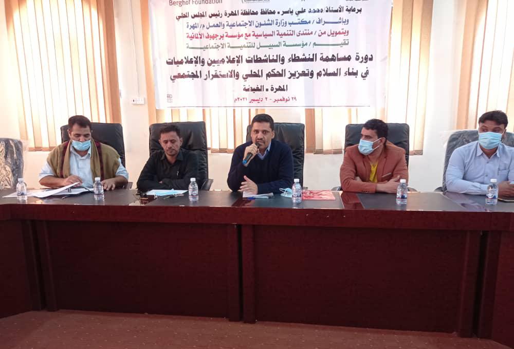 الغيضة-دورة تدريبية للاعلامين في بناء السلام و تعزيز الحكم المحلي و الاستقرار المجتمعي.