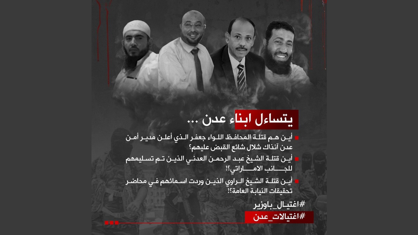 حملة إلكترونية واسعة للمطالبة بالتحقيق في جرائم الاغتيالات المستمرة بعدن