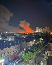 شاهد بالصور.. الطيران يحرق معسكر وسط صنعاء بغارات شديدة الانفجار والسماء تتحول إلى هذا اللون