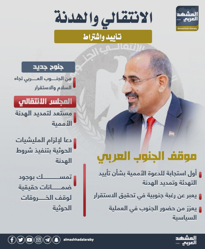 الانتقالي والهدنة.. تأييد واشتراط (إنفوجراف)