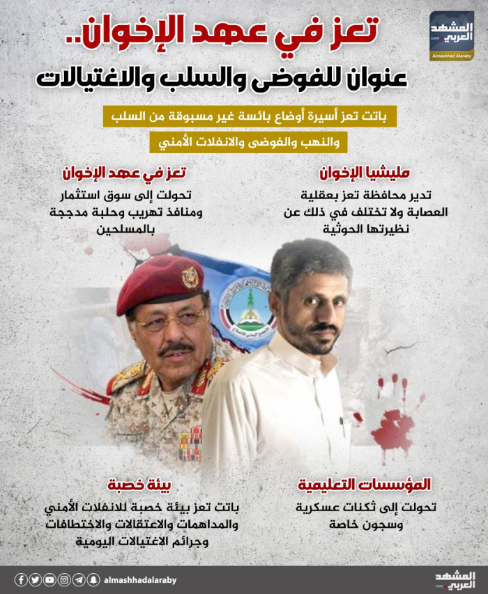 تعز في عهد الإخوان.. عنوان للفوضى والسلب والاغتيالات (إنفوجراف)