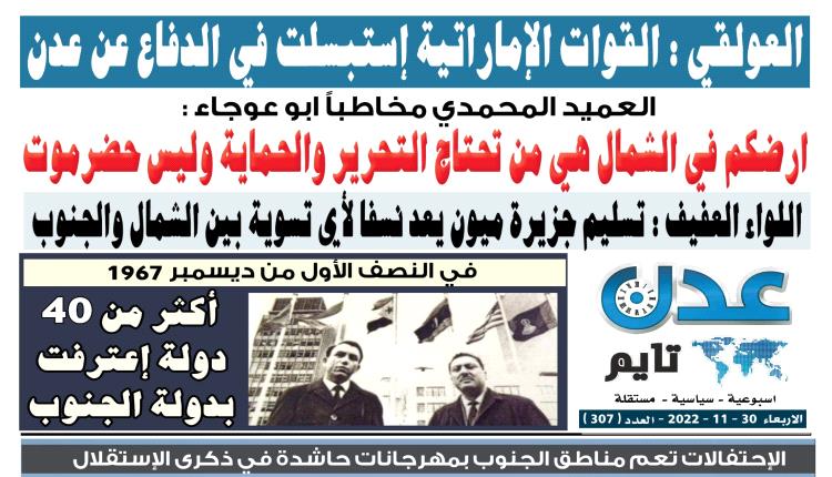 تصفح العدد الإلكتروني لـ #صحيفة  #عدن_تايم  الورقية .. عدد رقم 307