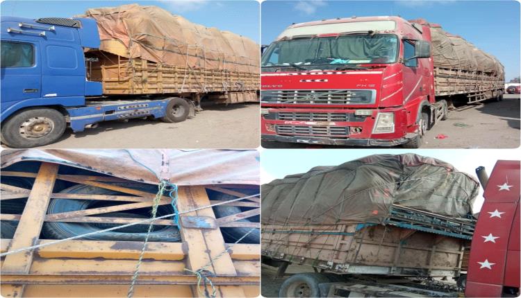 ضبط قاطرتين محمله بـ 4270 من الاطارات المستخدمة