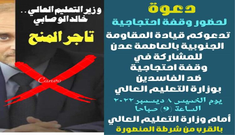 المقاومة الجنوبية تدعو للمشاركة في الوقفة الإحتجاجية أمام وزارة التعليم العالي