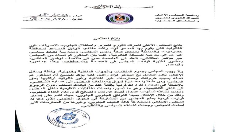 الحراك الثوري يدعو الجهات الداخلية والخارجية لعدم التعامل مع شخص ينتحل صفة رئيسه (بلاغ)