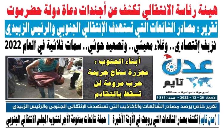 تصفح العدد الإلكتروني لـ #صحيفة  #عدن_تايم  الورقية .. عدد رقم 311