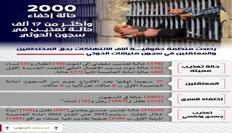 تقارير حقوقية تكشف أرقام صادمة لحالات التعذيب والإخفاء في سجون الحوثي