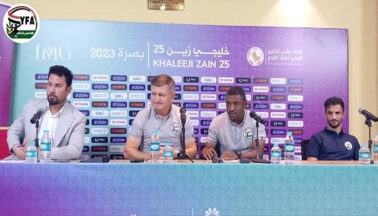 المدرب التشيكي سكوب المدير الفني لمنتخبنا الوطني الاول في المؤتمر الصحفي لمباراة اليمن والسعودية في خليجي 25 البصرة