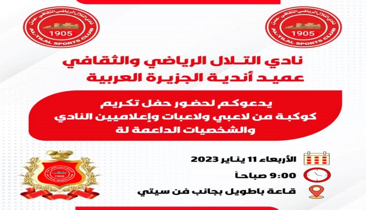 الأربعاء.. إدارة نادي التلال تقيم حفل تكريم كوكبة من لاعبي ولاعبات النادي في الزمن الجميل