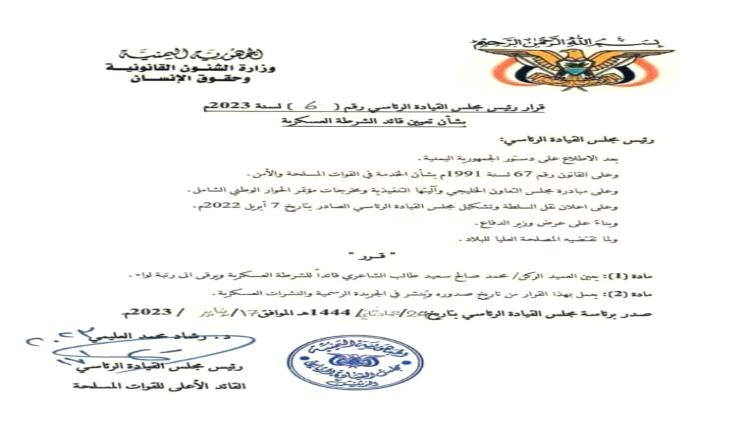 قرار جديد لرئيس مجلس القيادة الرئاسي