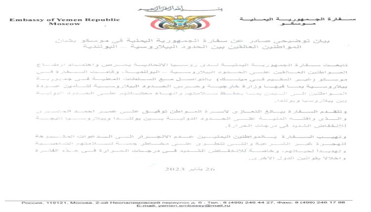 توفي أحدهم نتيجة البرد .. السفارة اليمنية توضح بشأن المواطنين العالقين على الحدود البيلاروسية - البولندية