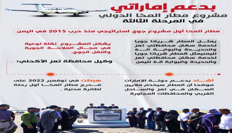 بدعم الإمارات بدأت أعمال المرحلة الثالثة لمشروع مطار المخا الدولي (انفوجرافيك)