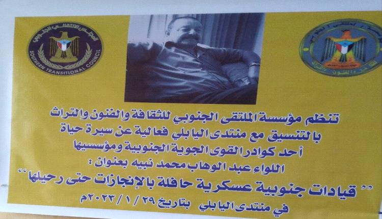 سيرة حياة المناضل اللواء عبدالوهاب محمد نبيه في منتدى الفقيد اليابلي ومؤسسة الملتقى الجنوبي للثقافة