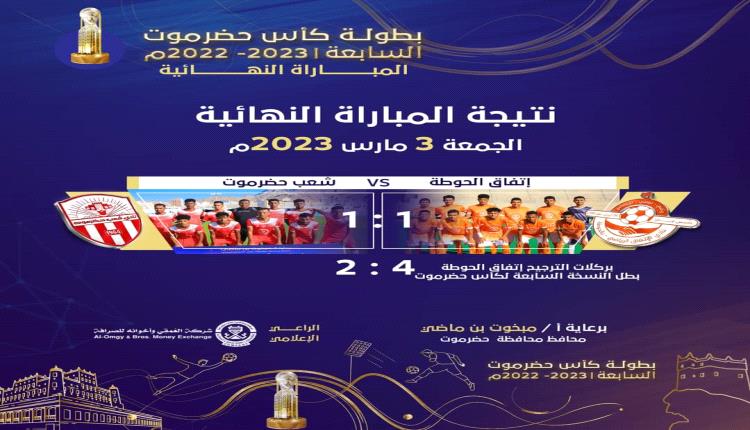 إتفاق الحوطة يتوج بطلا لبطولة كأس حضرموت بنسختها السابعة