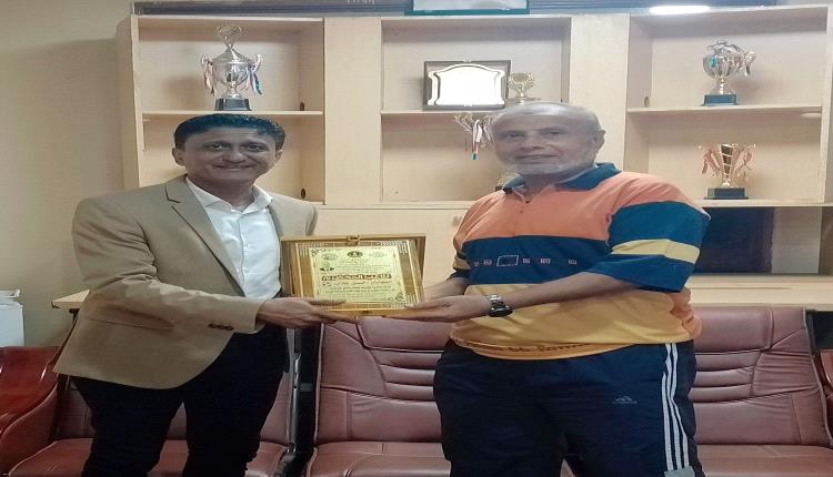 مدير مكتب الشباب والرياضة بعدن يكرم النجم الكروي السابق حسين جلاب