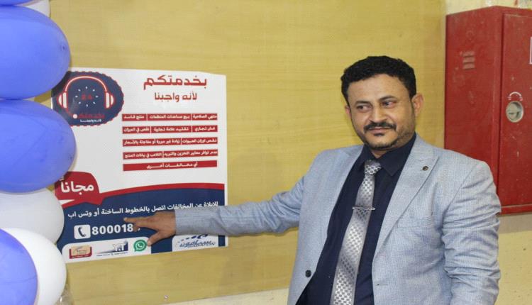 تركيب ملصقات توعوية بالارقام الساخنة للابلاغ عن اي مخالفات تجارية في عدن