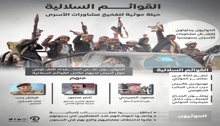 قائمة متطرفة من الأسرى تسلمها مليشيا الحوثي في مفاوضات جنيف لاطلاق أفرادها