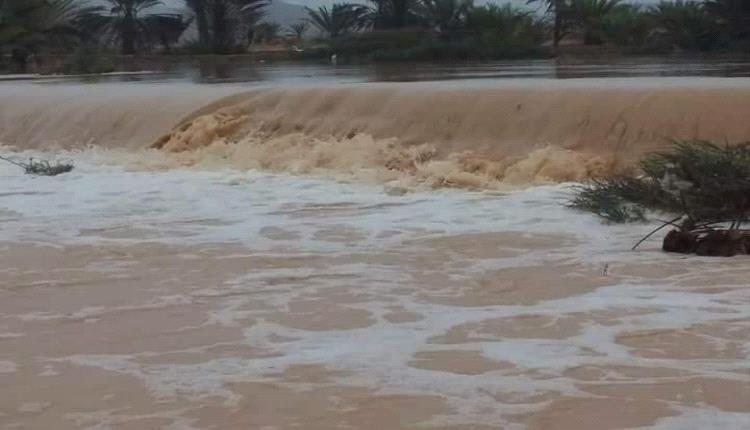 مياه السيول تتسبب بأضرار كبيرة في مديريتي رضوم وميفعة