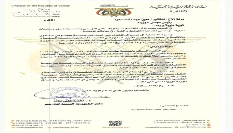السفير مارم يدعو الى أهمية عقد اللجنة العليا المشتركة بين اليمن ومصر