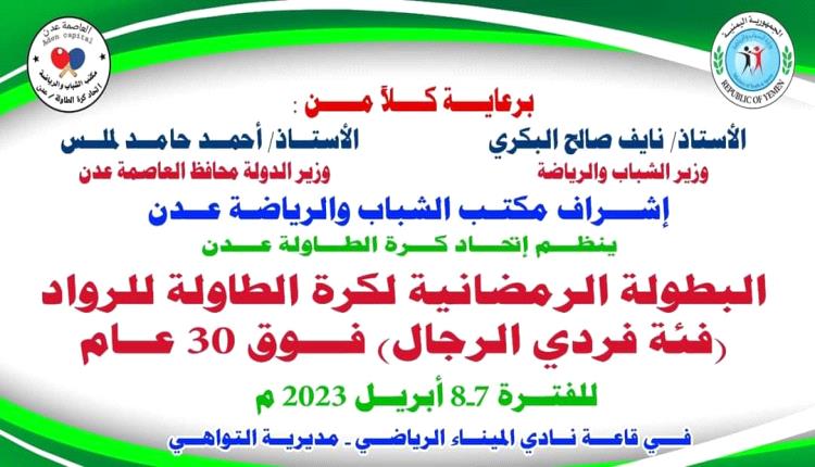 اتحاد الطاولة بعدن يستعد لتنظيم البطولة الرمضانية للرواد فوق (30) عاماً