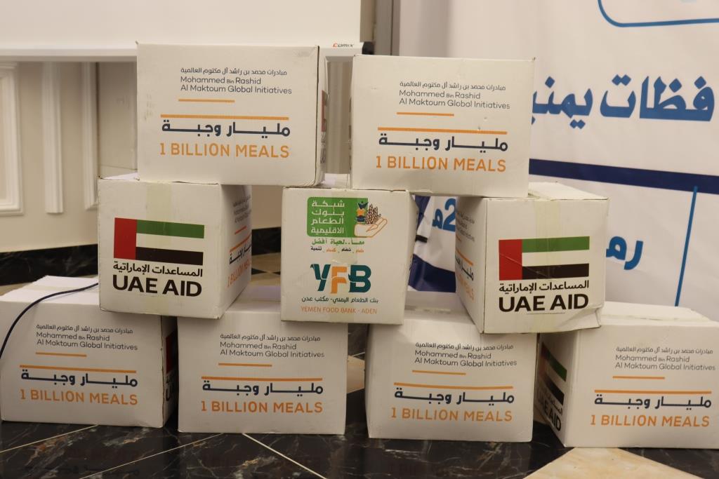 ضمن مبادرات مؤسسة محمد بن راشد آل مكتوم شبكة بنوك الطعام الإقليمية تدشن توزيع «15,000» طرد غذائي في اربع محافظات يمنية .