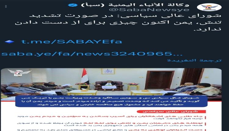 صادم.. وكالة الأنباء الحوثية تغرد بالفارسية