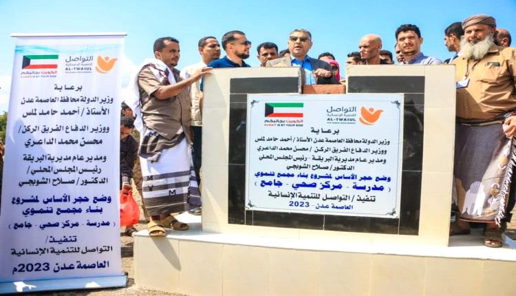 بكلفة 135 ألف مقدمة من الكويت ..وضع حجر الأساس لمشروع بناء مجمع تنموي متكامل في عدن