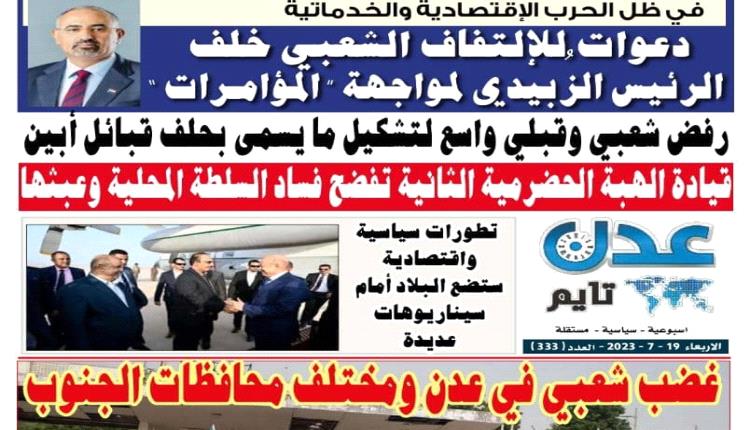 تصفح العدد الإلكتروني لـ #صحيفة  #عدن_تايم  الورقية .. عدد رقم 333