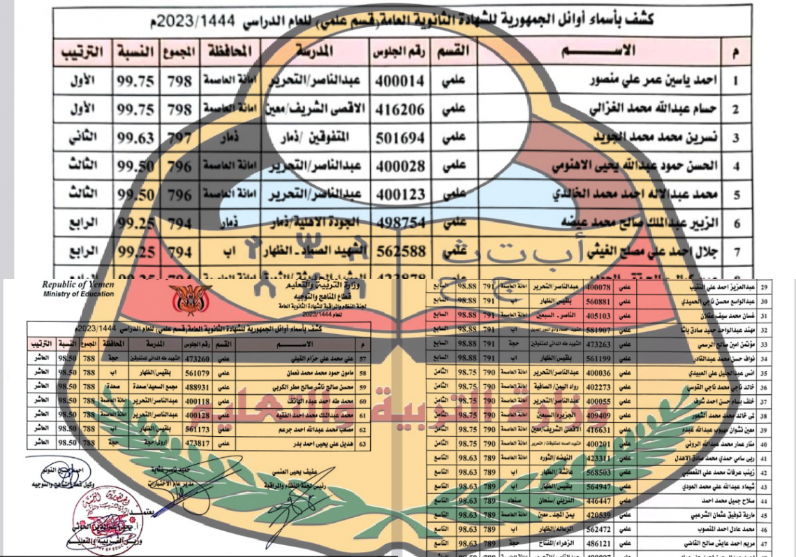 تربية صنعاء تعلن أسماء أوائل الجمهورية في إمتحانات الثانوية العامة وطريقة الحصول على نتائج جميع الطلاب (تفاصيل)
