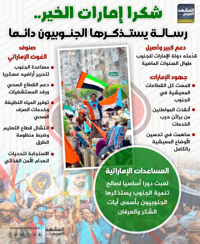 شكرا إمارات الخير.. رسالة يستذكرها الجنوبيون دائما (إنفوجراف)