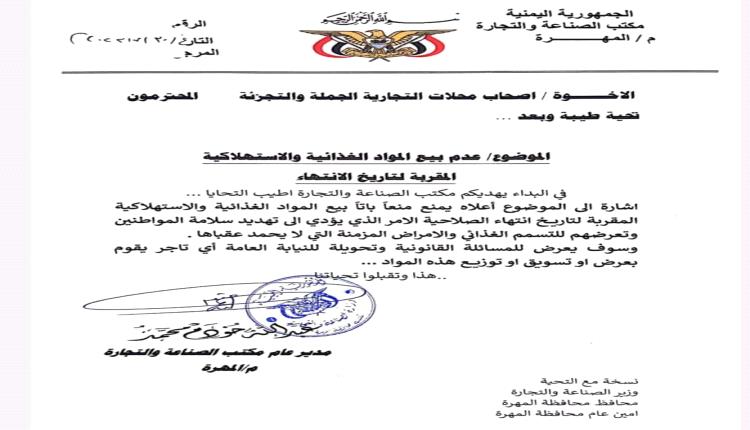 تعميم بمنع بيع المواد الغذائية المقاربة على الإنتهاء