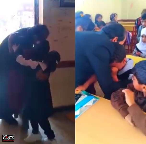 الوداع المُر.. معلم يمني يودّع تلاميذه بالدموع والأحضان بعدما قرر الاغتراب بالسعودية بحثًا عن لقمة العيش ”فيديو”