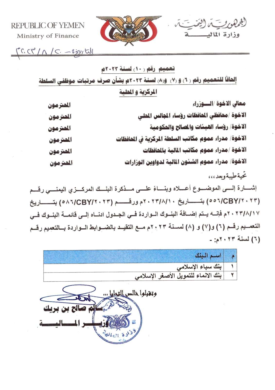 اعتماد بنك الانماء للتمويل الأصغر الاسلامي ضمن قائمة البنوك التي ستتولى صرف المرتبات