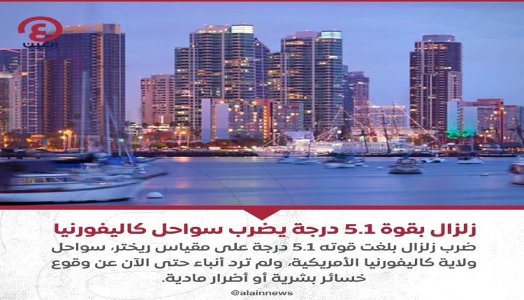 زلزال بقوة 5.1 درجة يضرب سواحل كاليفورنيا