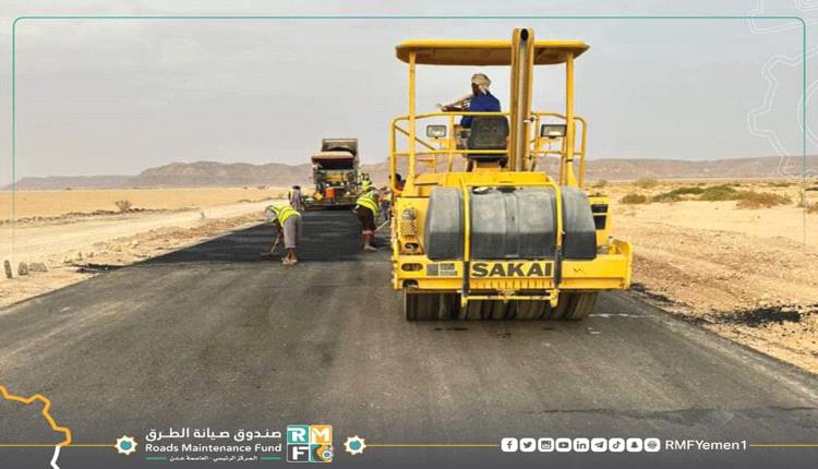 تواصل أعمال الاسفلت في خط عتق العبر بشبوة