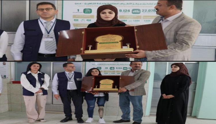 الوكيل النوبة يكرم مكتب الاعلام - عدن ويسلم درع للناشطة السورية ديما امين