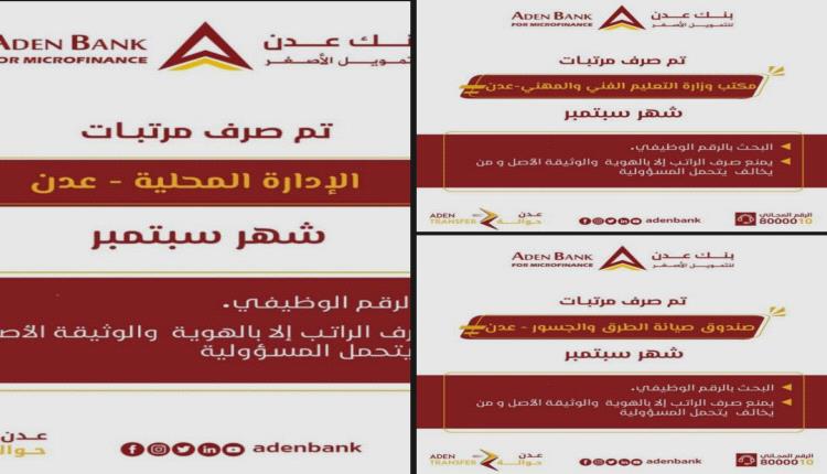 بنك عدن يبدأ تسليم مرتبات عدد من موظفي المرافق الحكومية بعدن